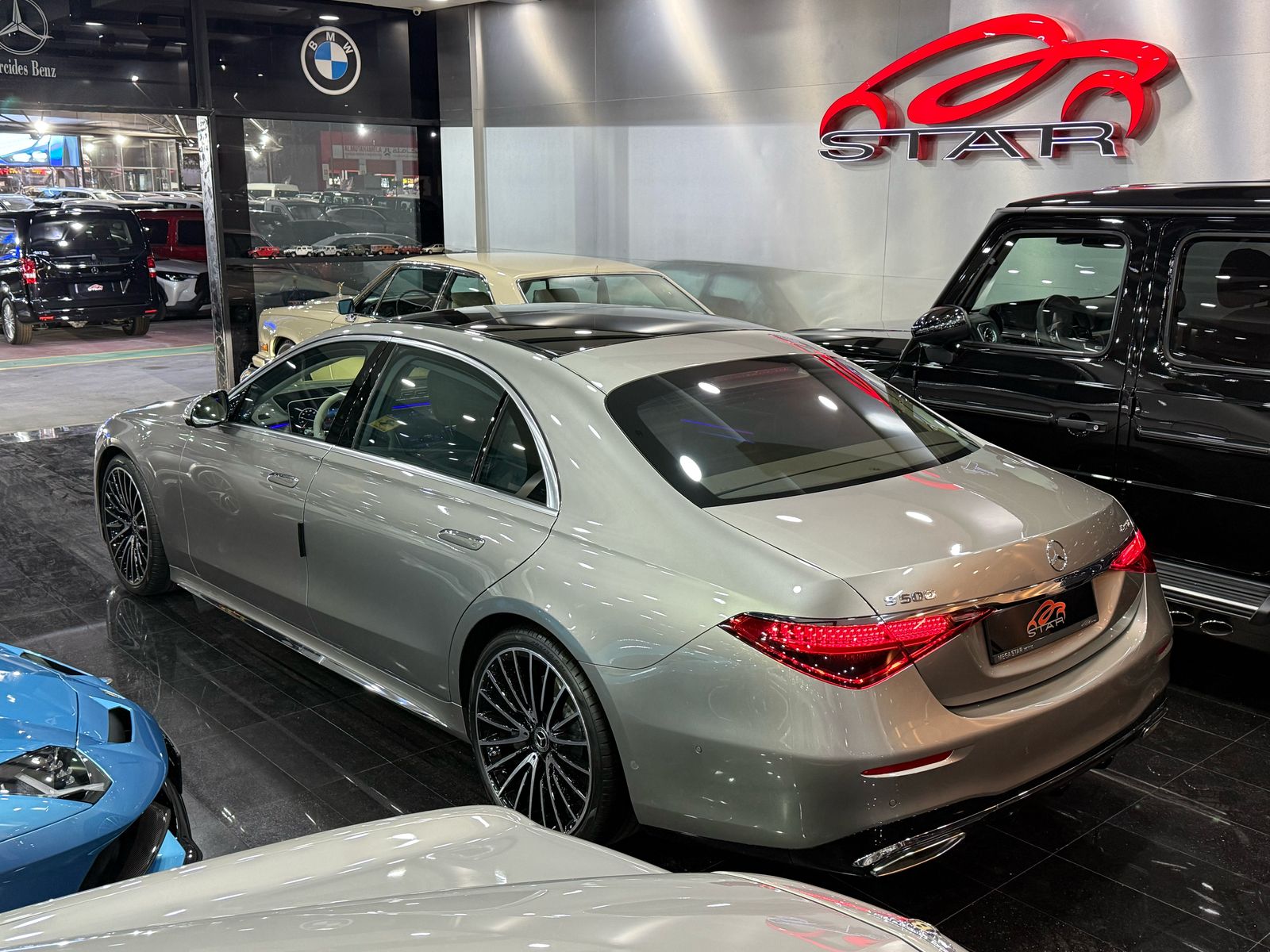 Mercedes-Benz S 500 L is a luxury sedan that continues the long history of the S-Class, known for comfort, advanced technology, and high performance. This model comes in a shiny gold exterior with full LED lights, soft-close doors, and 20-inch alloy wheels. The interior is finished in Nappa leather beige, featuring massage seats, ambient lighting, a panoramic sunroof, and a large touchscreen display. It is powered by a 3.0-liter inline 6-cylinder turbo engine with mild hybrid technology, paired with a 9-speed automatic transmission, producing around 429hp.